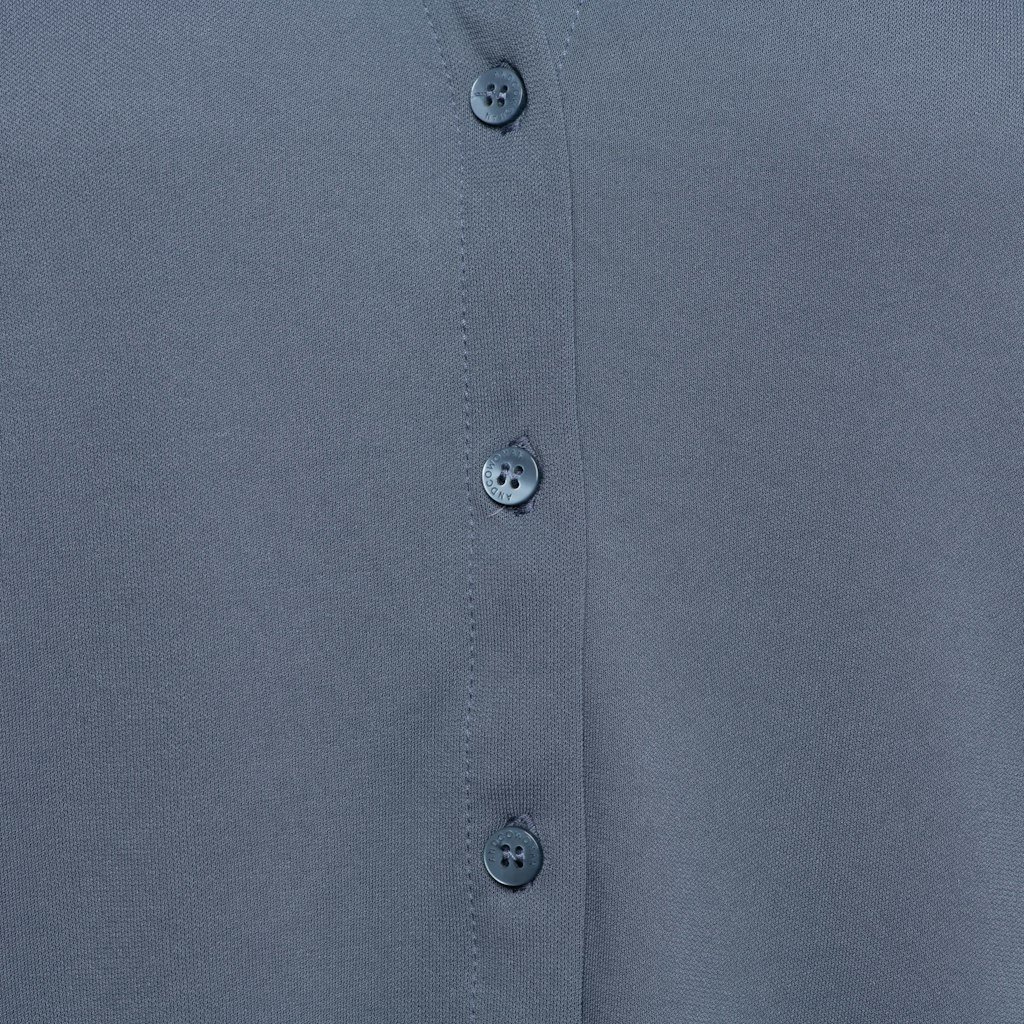 &Co Woman Tricot Blouse in de Kleur Jeansblauw met kraag, V hals, knoopsluiting en kapmouwen.