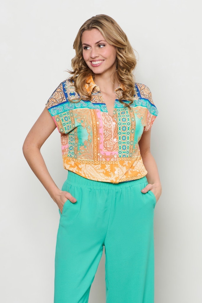 &Co Woman Broek in de kleur Groen met elastische band en 2 steekzakken.