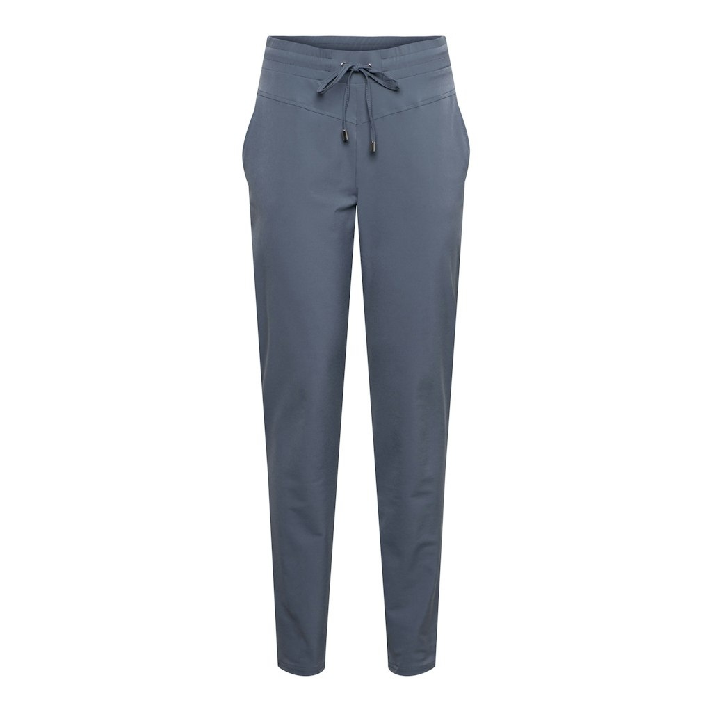&Co Woman Travel Broek in de Kleur Jeansblauw met elastische band en koord en steekzakken.