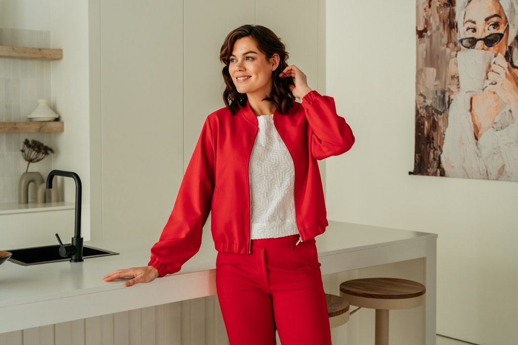 &Co Woman Heavy Travel Broek in de Kleur Rood met elastische band, 2 steekzakken en in een zwaardere travelkwaliteit.
