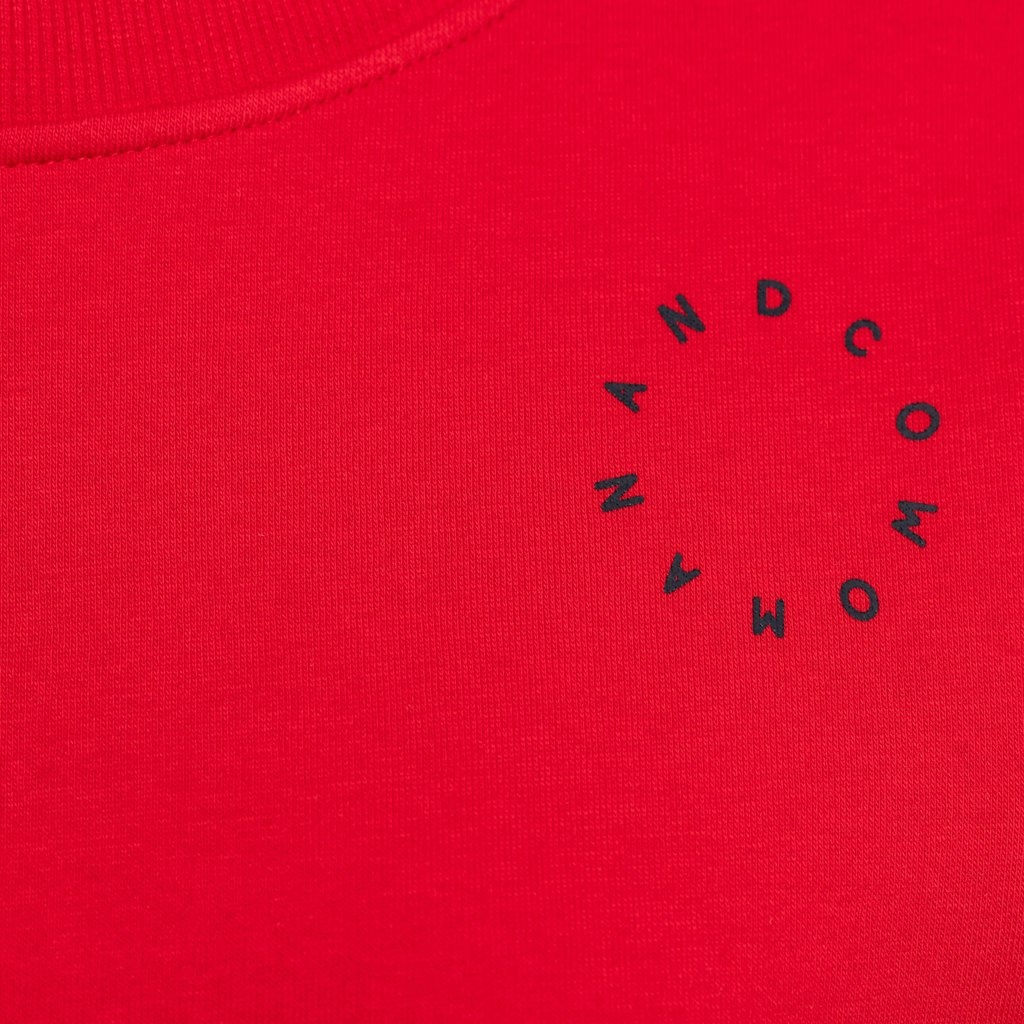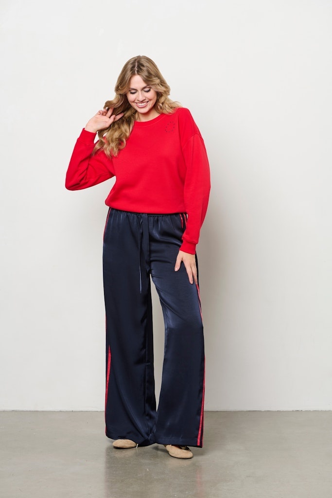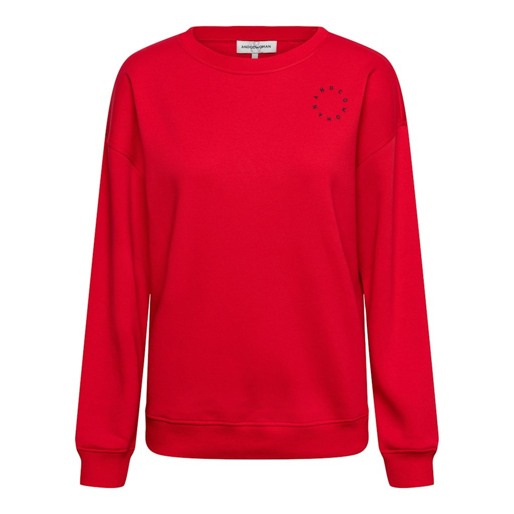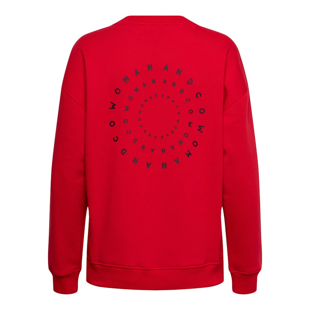 &Co Woman Pullover in de Kleur Rood met ronde hals, lange mouwen met manchetten en boord, kleine ronde tekstprint op de voorkant en grote ronde tekstprint op de rug.