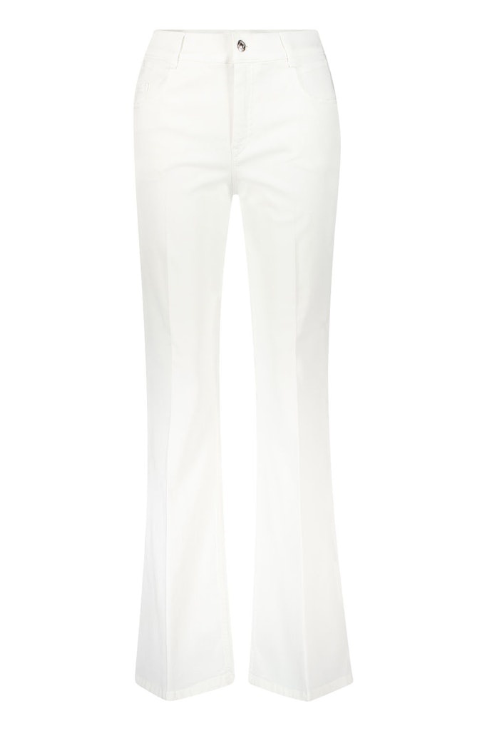 Atelier Gardeur Broek in de Kleur Offwhite met Knoopsluiting, 5 pocket en een iets flare model.