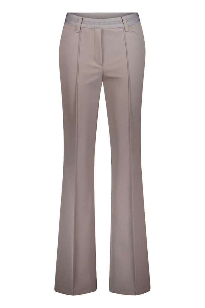 Atelier Gardeur Broek in de Kleur Taupe met Elastische band, steekzakken, Flare model en gestikte voornaad.