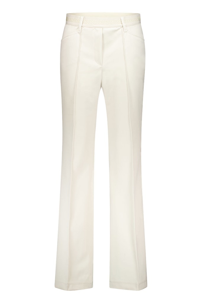 Atelier Gardeur Broek in de Kleur Zand met Elastische band, steekzakken, Flare model en gestikte voornaad.