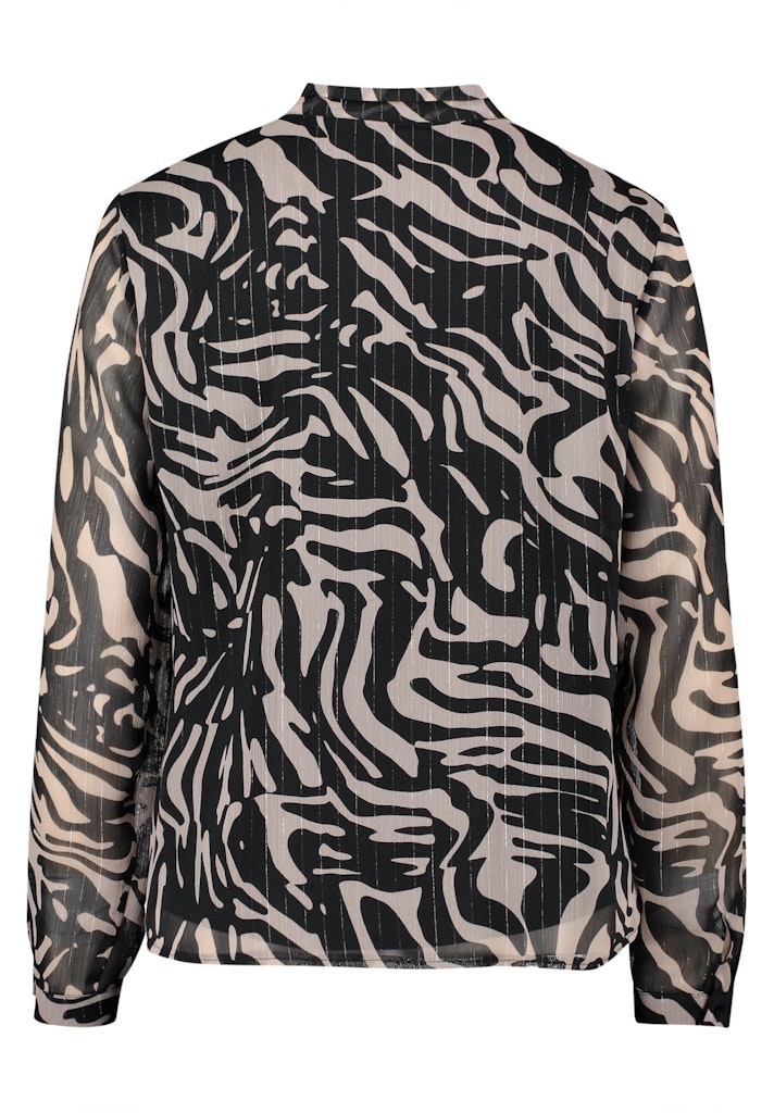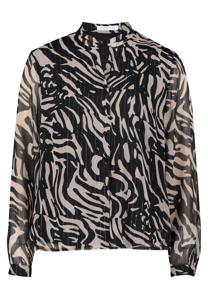 Betty & Co Blouse in het Zwart/Ivoor met staande kraag, lange mouwen, print met lurex banen in de stof.