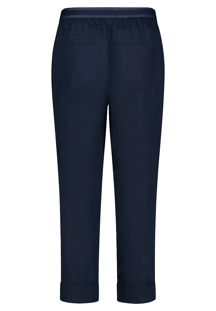 Betty & Co Enkelvrije Broek in de Kleur Marine met elastische band en koordceintuur, steekzakken en enkelvrije lengte.