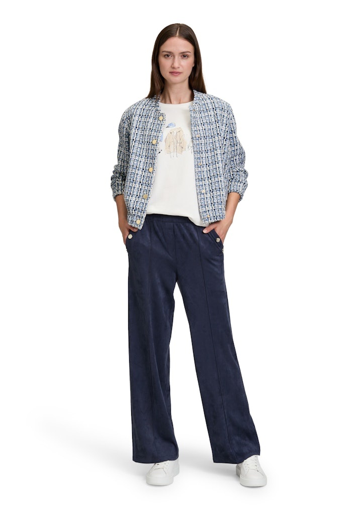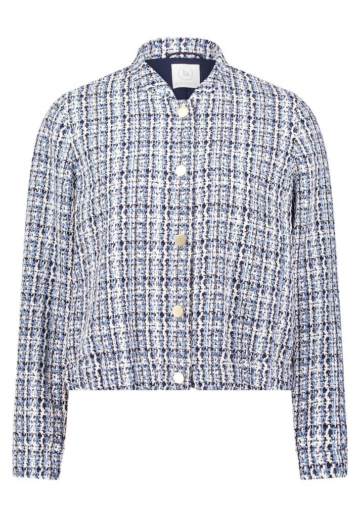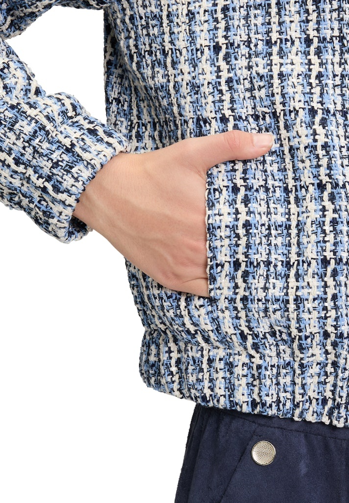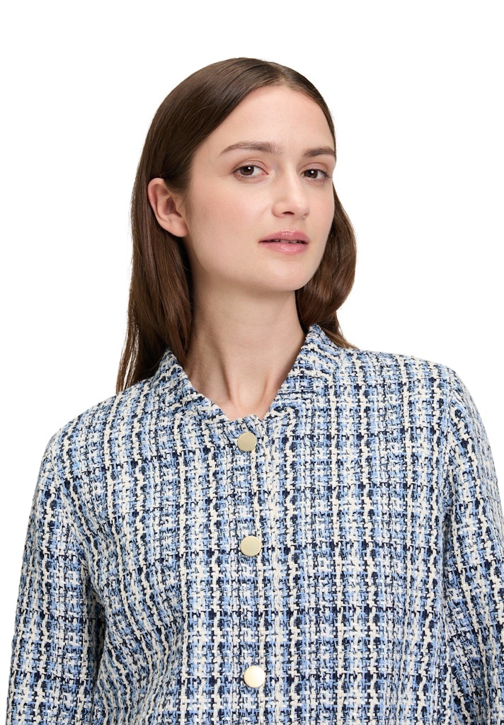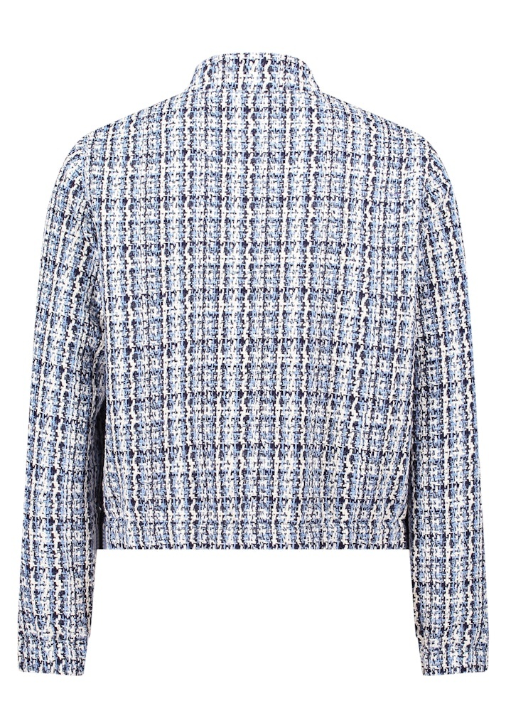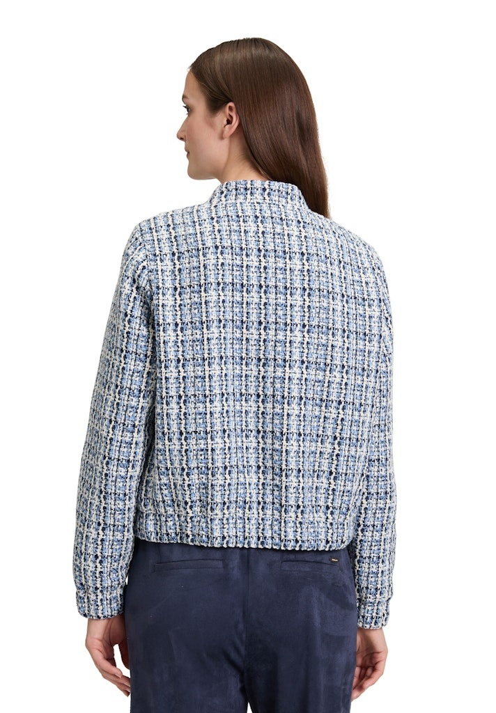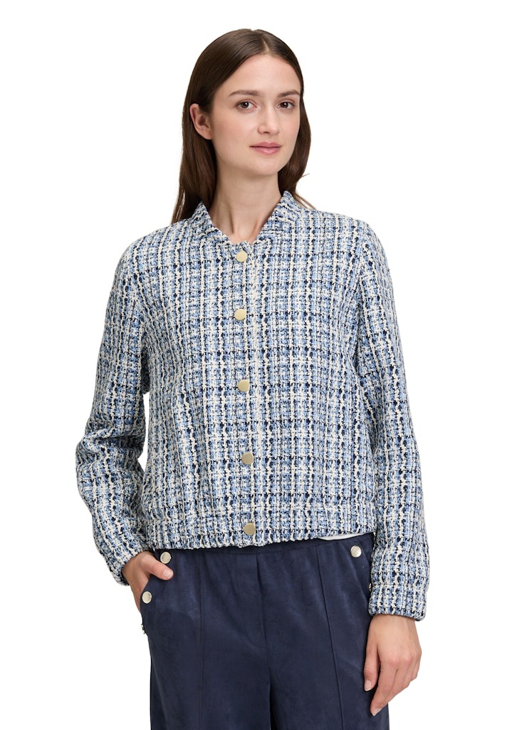Betty & Co Jasje in de Kleur Blauw Combinatie met staande hals, drukknopen, lange mouwen en makkelijk draag en combineerbaar.