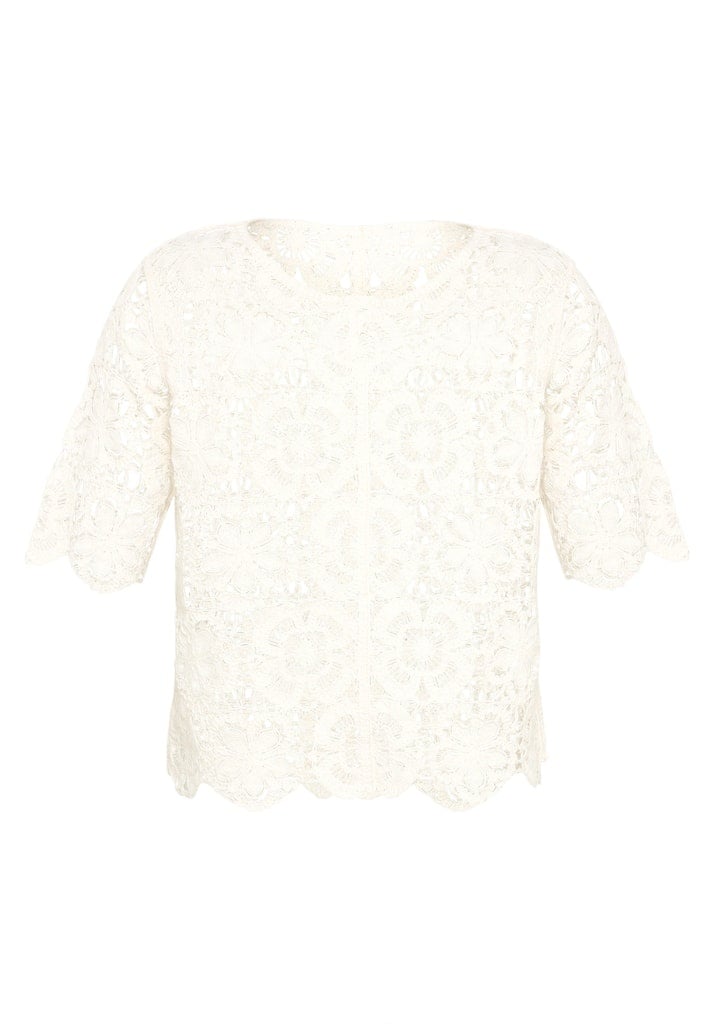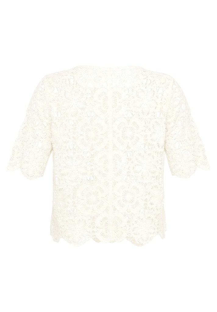 Betty & Co Pullover in de Kleur Ecru met ronde hals, korte mouwen en geheel in kant.