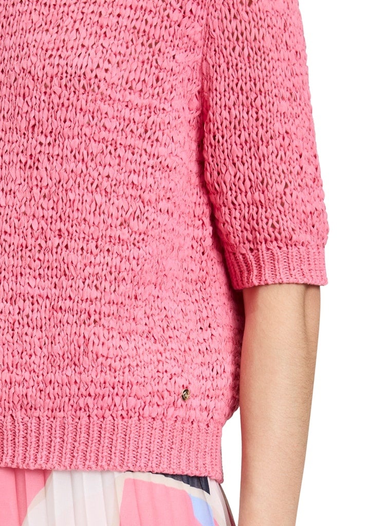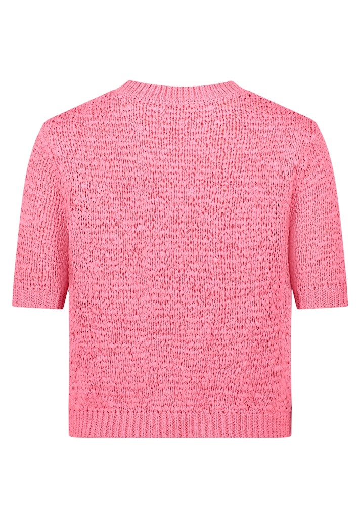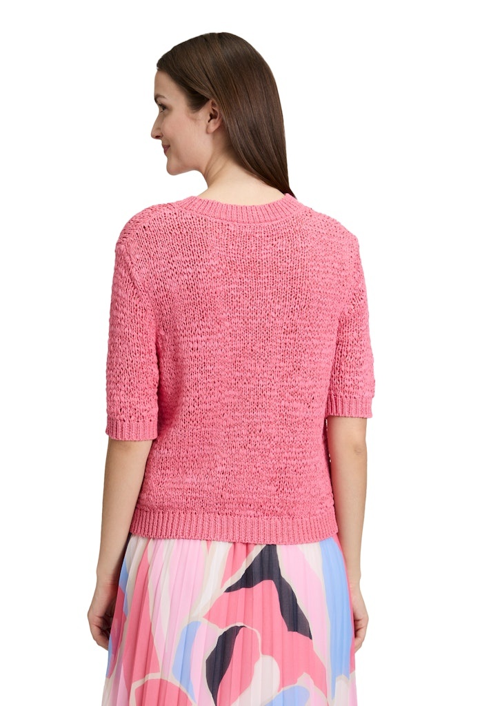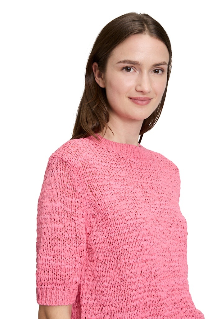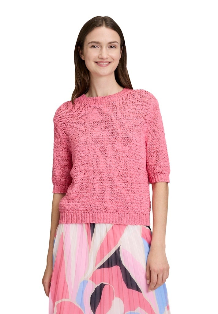 Betty & Co Pullover in de Kleur Rose met ronde hals, Korte mouwen en in een bandjesgaren.