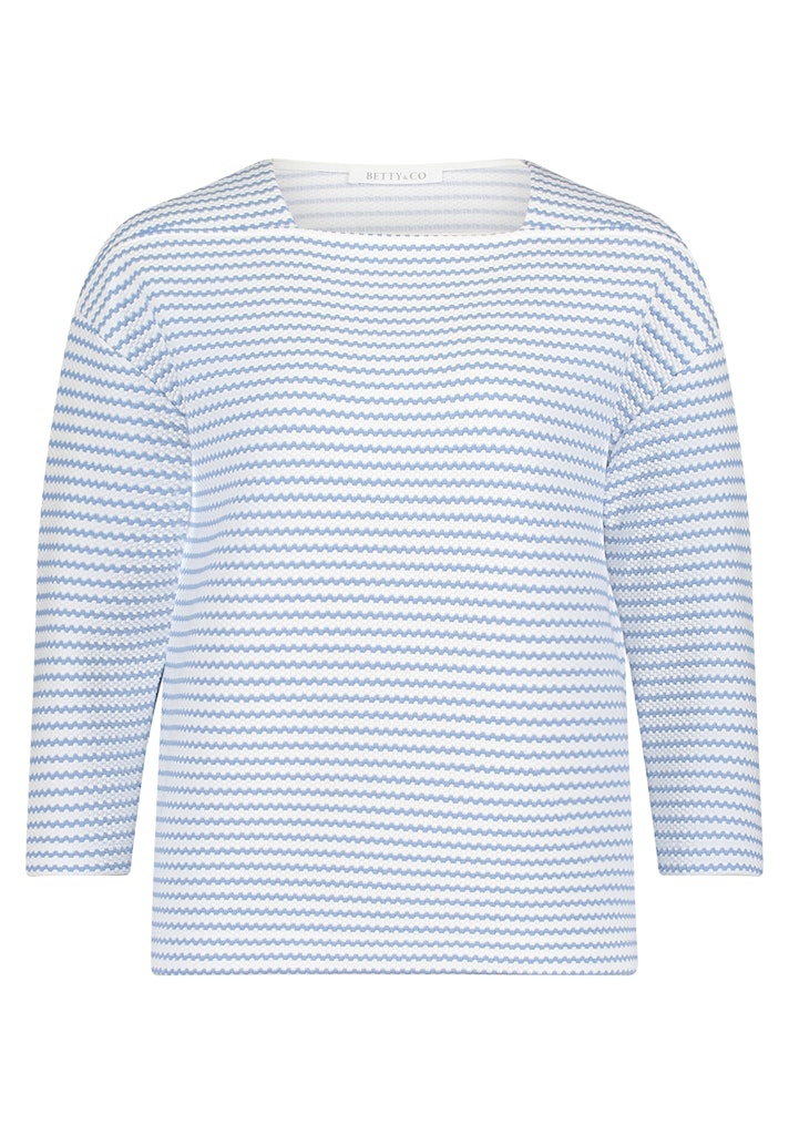 Betty & Co Shirt in de Kleur Blue/Offwhite gestreept met vierkante hals, 3/4 mouwen en in een iets vollere kwaliteit als standaard shirt.