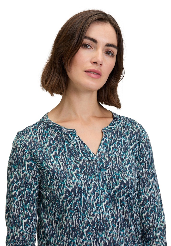 Betty & Co Shirt in het Nachtblauw Combinatie met ronde hals en V inzet, lange mouwen en geheel in print.