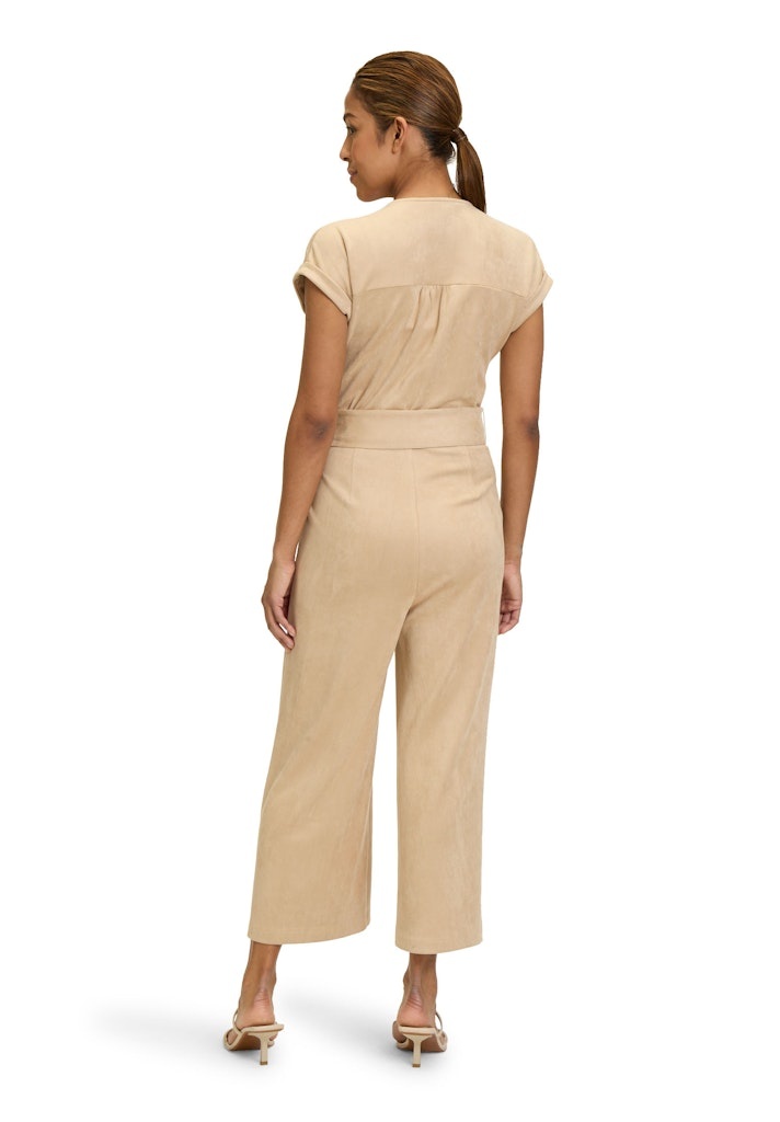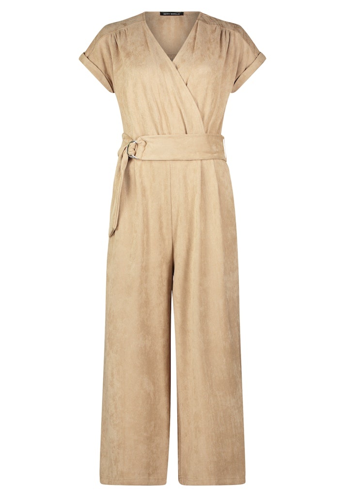 Betty Barclay Suedine Jumpsuit met vaste overslag, knoopband, kapmouwen en superzacht aanvoelend.