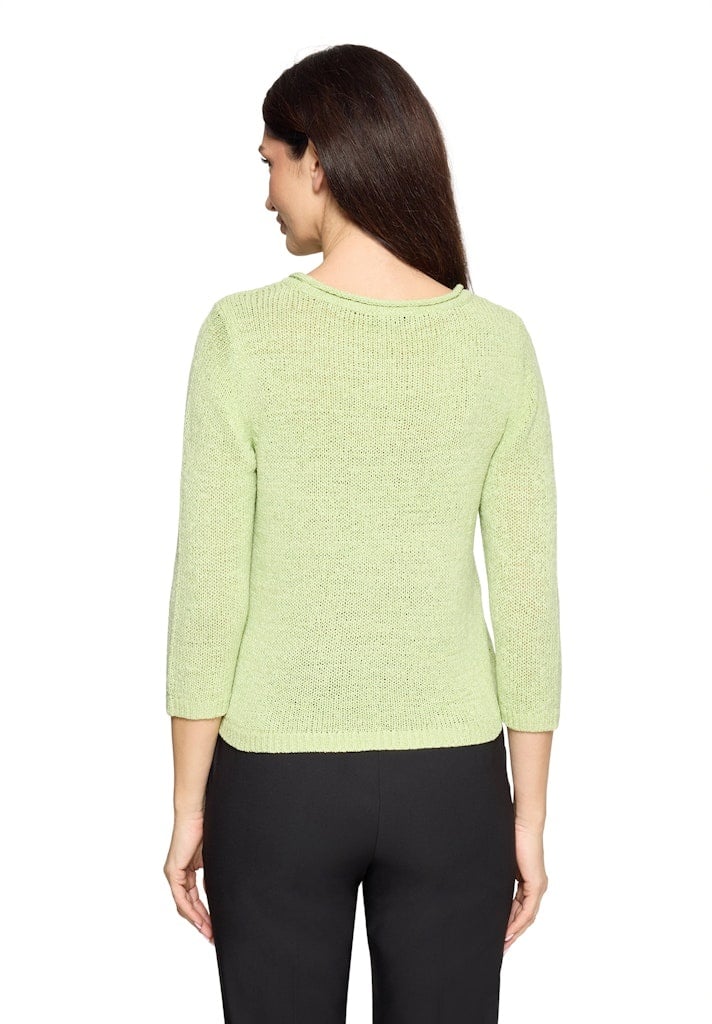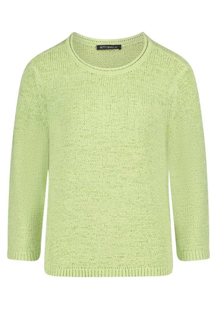 Betty Barclay Pullover in de Kleur Groen met ronde hals, lange mouwen en geheel in een bandjesgaren wat comfortabel en luchtig draagt.