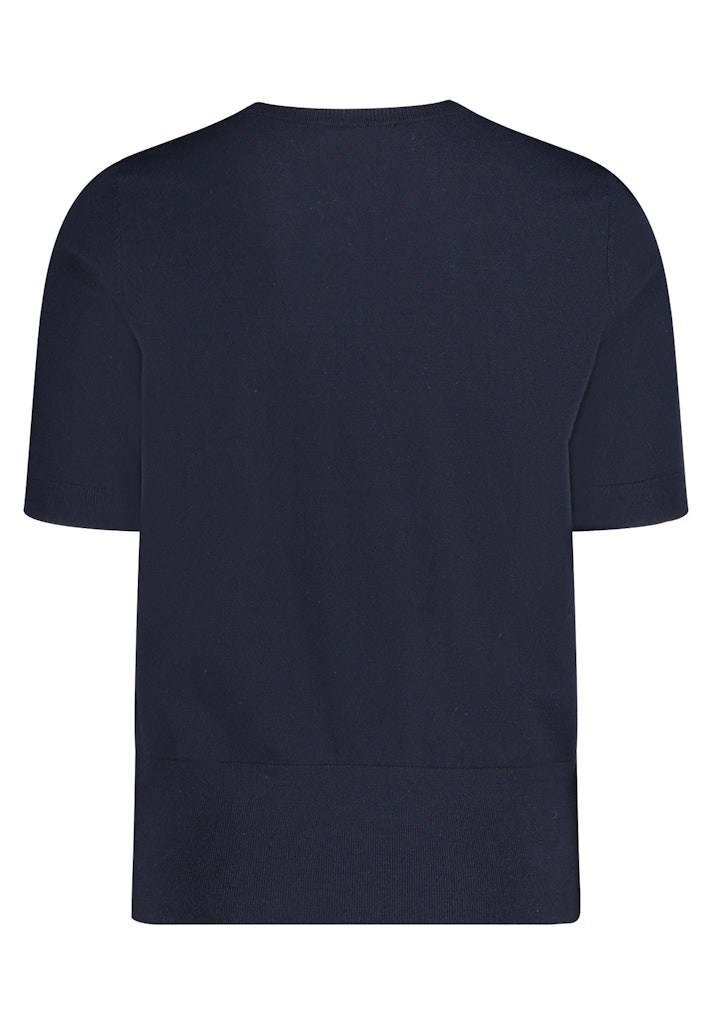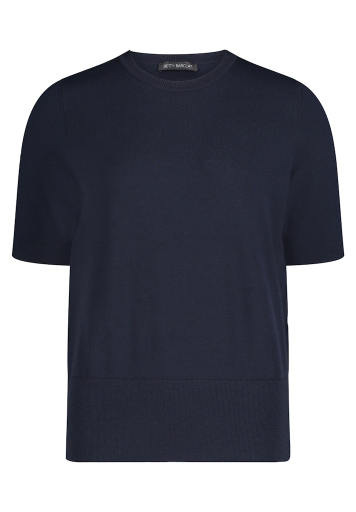 Betty Barclay Dunne Pullover in de Kleur Marine met hoge ronde hals en korte mouwen.