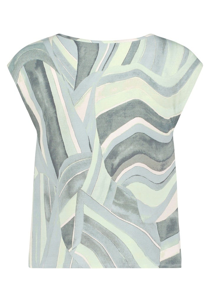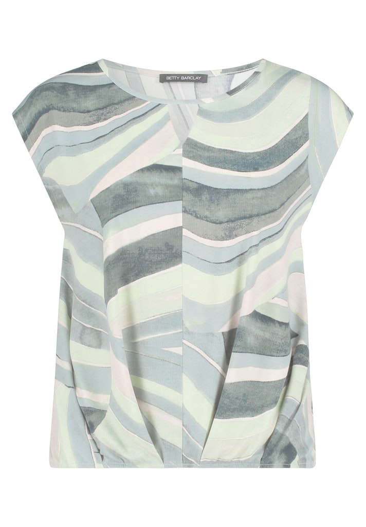 Betty Barclay shirt in de Kleur Groen Combinatie met ronde hals, kapmouwen en met een elastisch klein boordje.