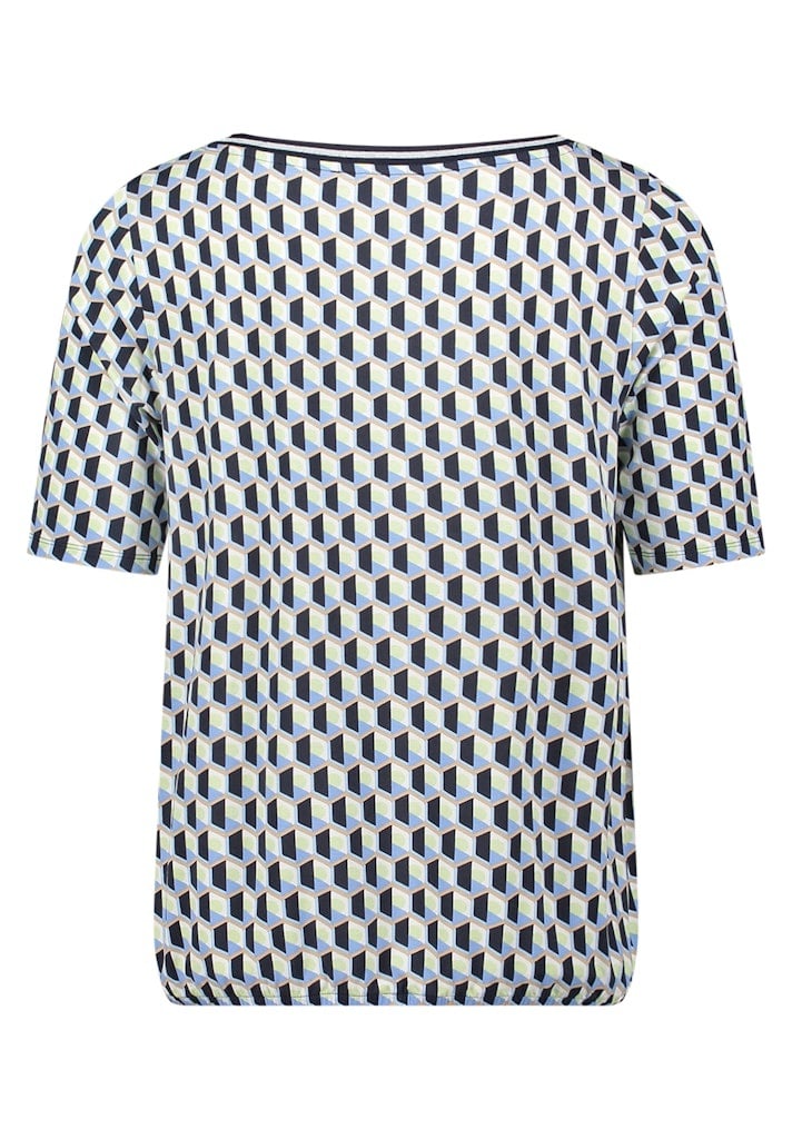 Betty Barclay Shirt in de Kleur Marine/Offwhite Combinatie met ronde hals en sportbies, korte mouwen, elastisch koordje in de boord en geheel in een 3D print.