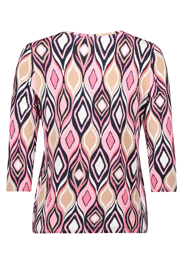 Betty Barclay Shirt in de Kleur Rose/Zand/Marine Combinatie met ronde hals, 3/4 Mouwen en geheel in print.