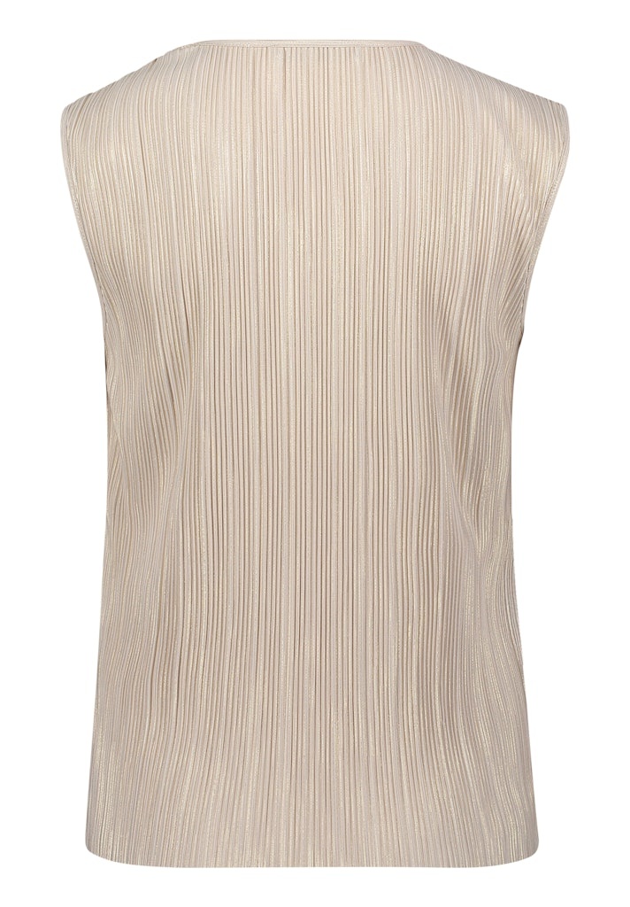 Betty Barclay Top in de Kleur Zand/Goud met ronde hals, ribbrelstructuur met gouden lurexdraadje erin verwerkt.