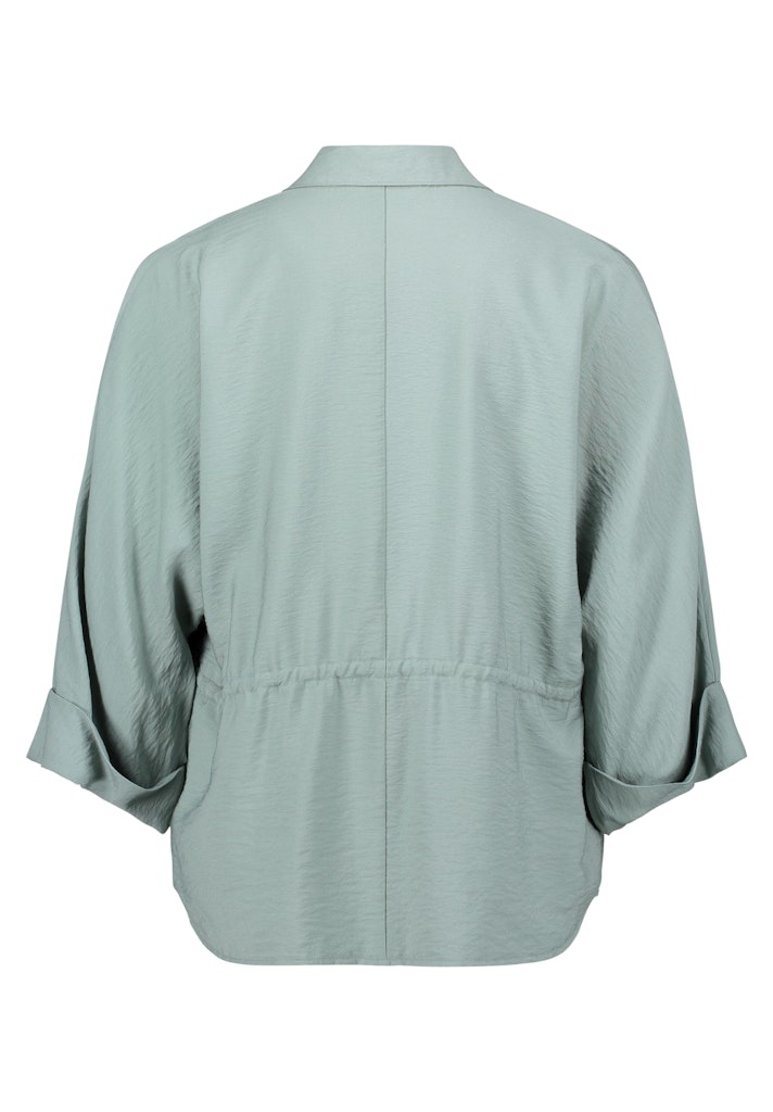 Betty Barlcay Blouse/Jasje in de Kleur Groen met Kraag, knoopsluiting, koordje in het midden om het iets te kunnen aansnoeren en 3/4 mouwen.