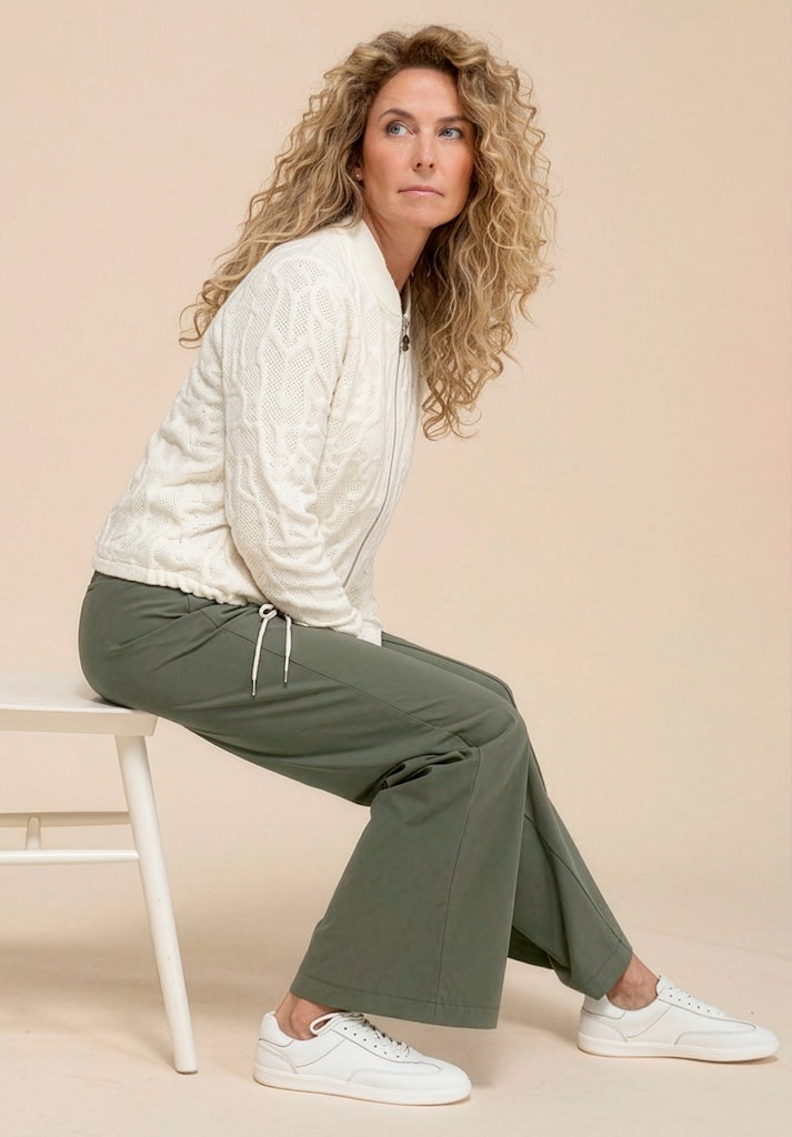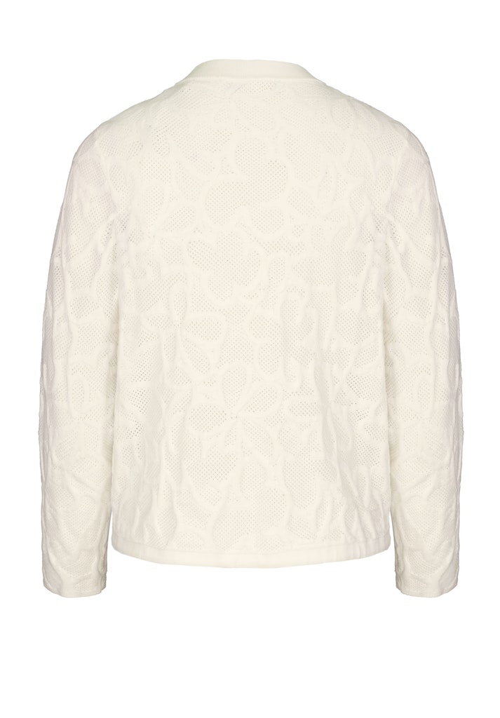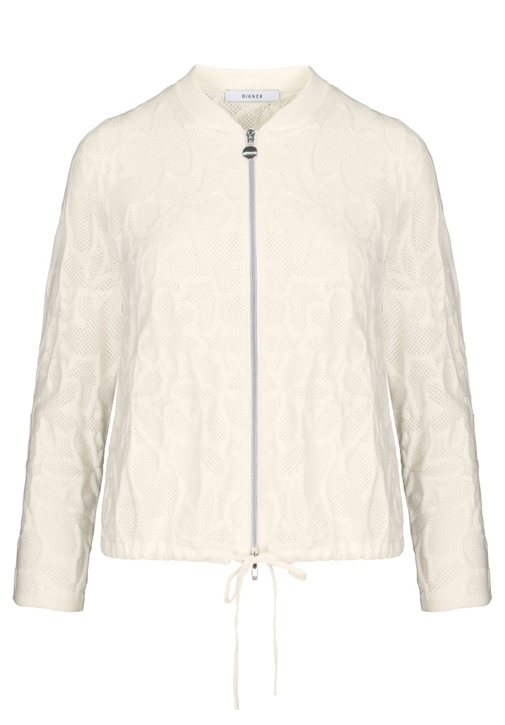 Bianca Jasje in de Kleur Ecru met staande hals, ritssluiting, koordje onderin, lange mouwen en geheel in een kantpatroon.