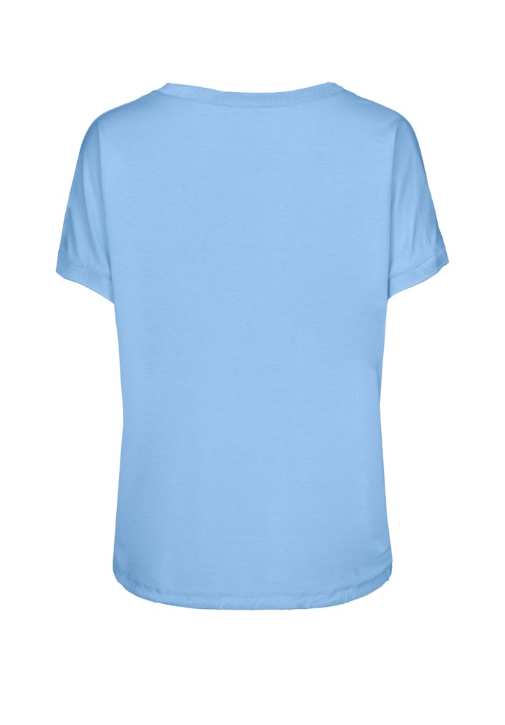 Bianca Shirt in de Kleur Blue met ronde hals, korte mouwen, elastische koordje in de boord en mooie half satijnglans voorpand.