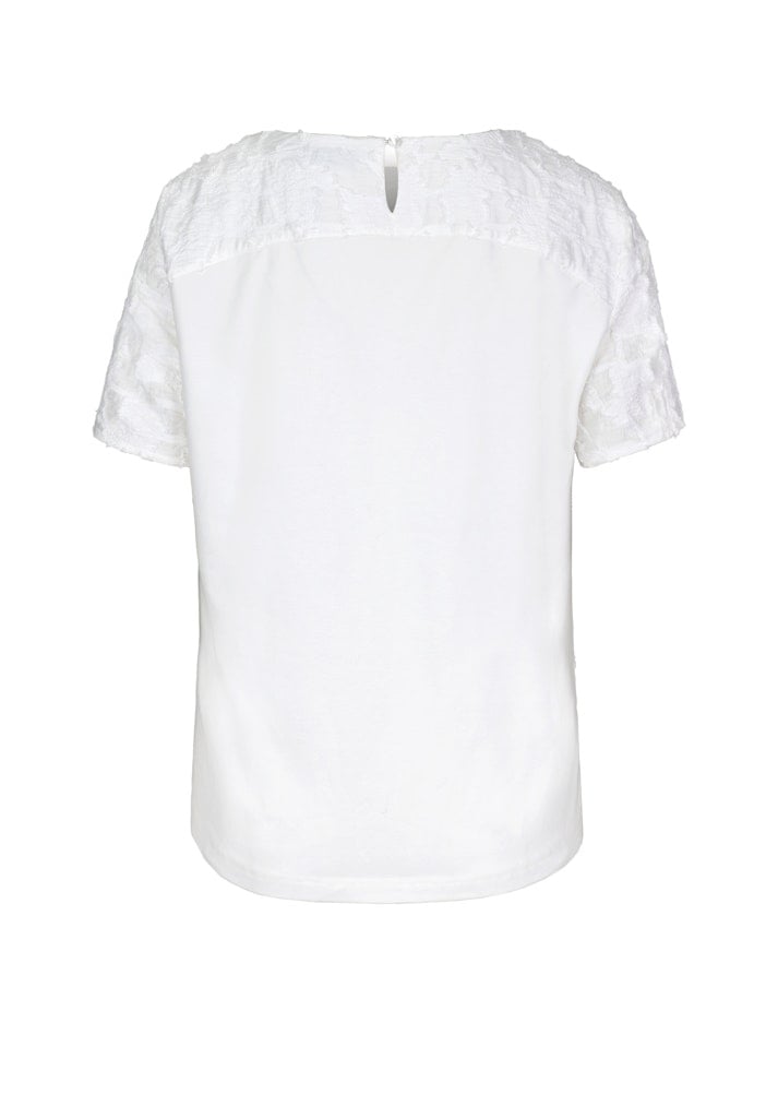 Bianca Shirt/Blouseshirt in de Kleur Offwhite met ronde hals, korte mouwen en sluiting op de rug.