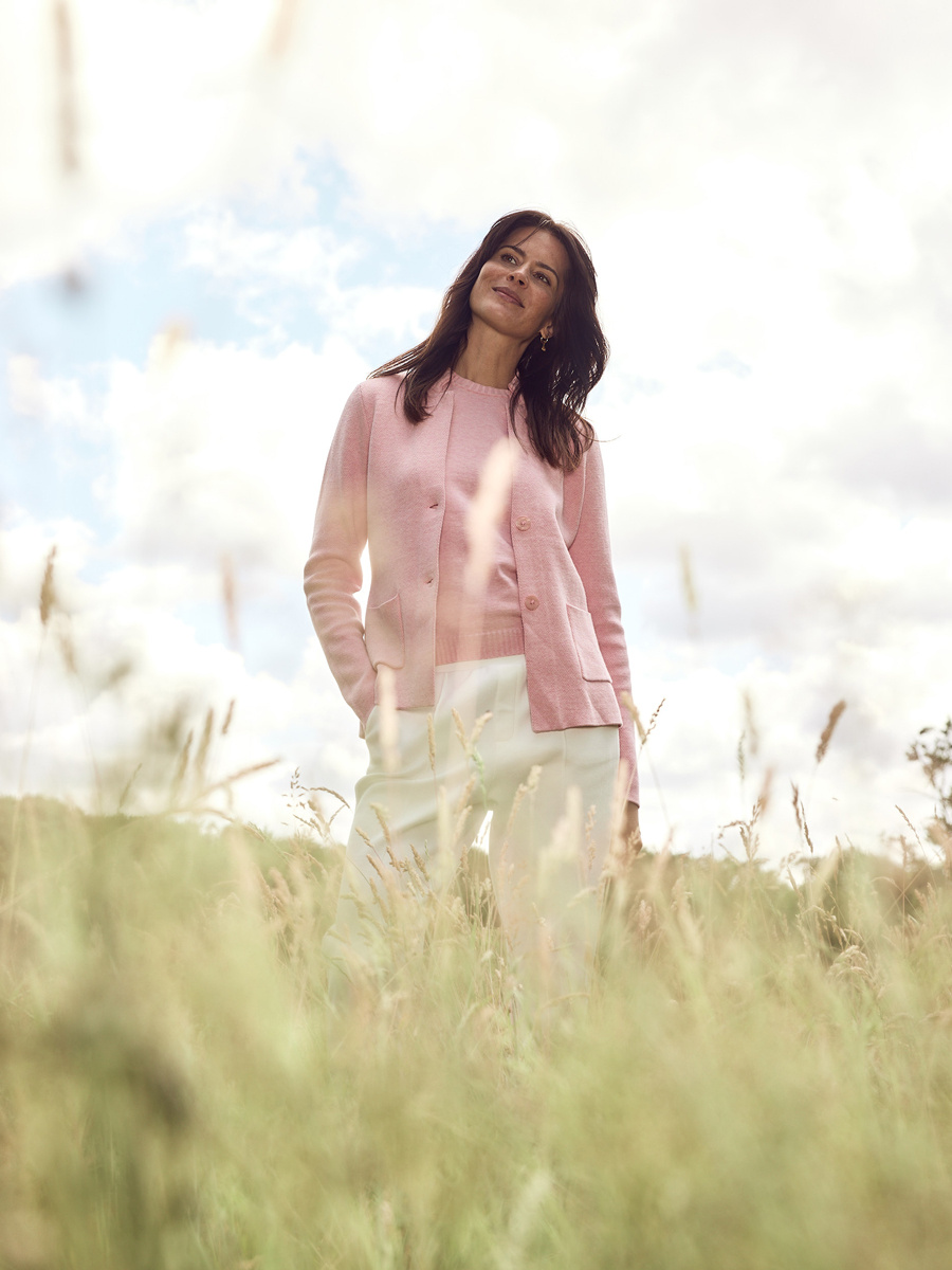 Bloomings Vestjasje in de Kleur Roze met staande hals , 2 knoopsluiting, 2 opgestikte zakken en lange mouwen.