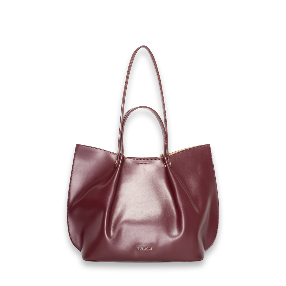 Bulaggi Tas in de kleur Bourgogne Rood in glad imitatie leer met sluiting en smal hengsel.