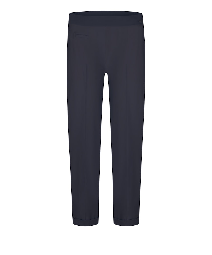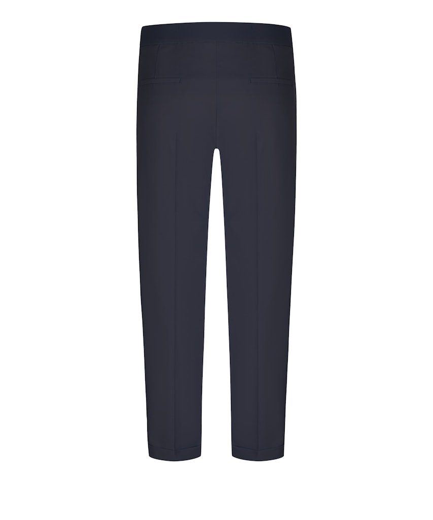 Cambio Enkelvrije Broek in de Kleur Marine met elastische band, 1 paspelzakje voor en 2 paspelzakjes op de achterkant en een kleine omslag in de pijp.