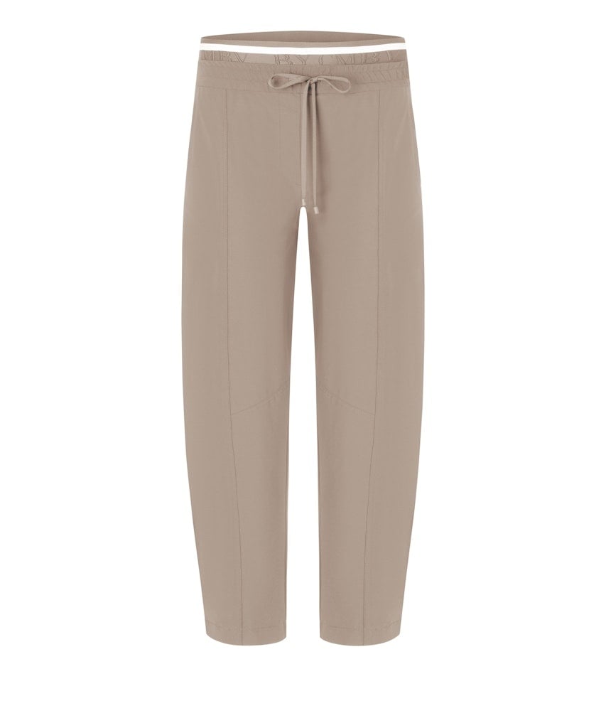 Cambio Enkelvrije Broek in de Kleur Taupe met elastische band, steekzakken, koordje en in een supermooie dunne parachute kwaliteit. Draagt erg comfortabel omdat je de broek niet voelt zitten.