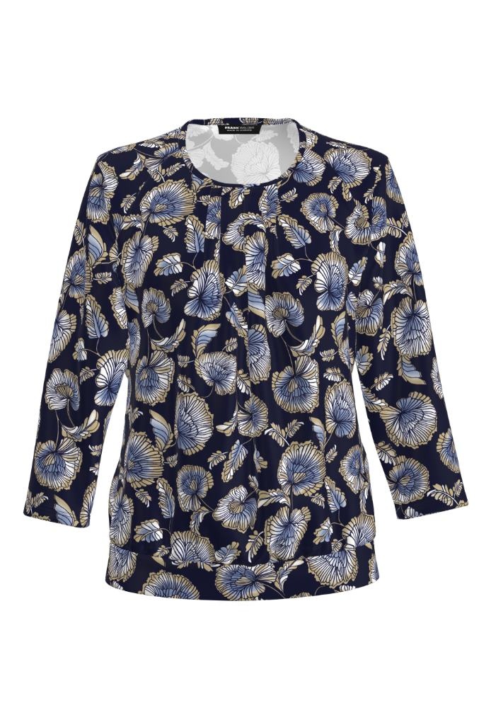 Frank Walder Blouson in het Marine Combinatie met ronde hals, 3/4 mouwen en een breed elastisch boord.