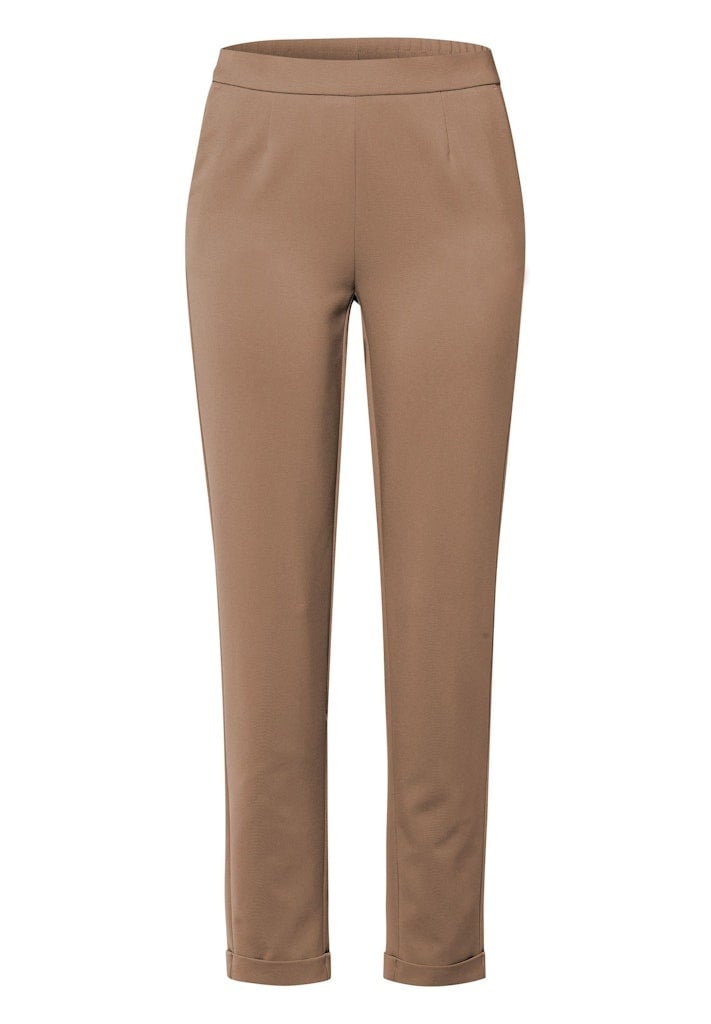 Frank Walder Enkelvrije Broek in de Kleur Hazelnoot met elastische band, steekzakken en een klein omslagje.
