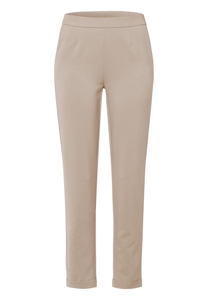 Frank Walder Enkelvrije Broek Model Mia in de Kleur Zand met elastische band, steekzakken en omslag.