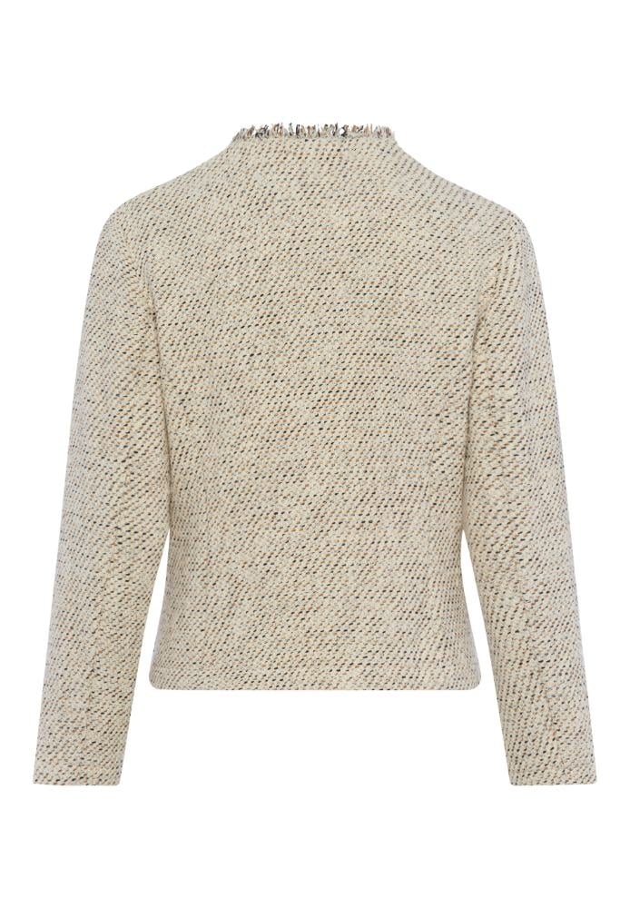 Frank Walder Jasje in de Kleur Zand Combinatie met ronde hals en rafels, ritssluiting, opgestikte zakken en lange mouwen.