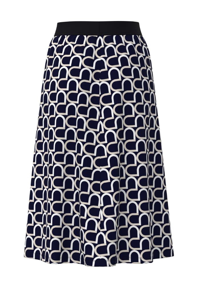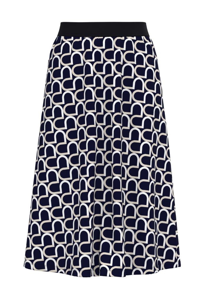 Frank Walder Rok in de Kleur Marine/Offwhite met elastische band, wijd uitlopend en geheel in een print.