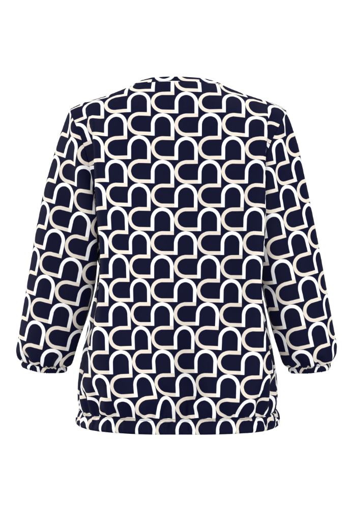 Frank Walder Shirt in de Kleur Marine/Offwhite met V hals, 3/4 mouwen met smal manchet en geheel in een print.