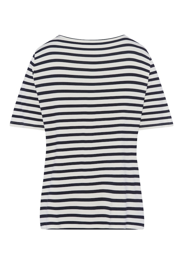 Frank Walder Shirt in de Kleur Marine/Rood/Offwhite Combinatie met ronde hals, korte mouwen en gestreept met kleine bloemprint.