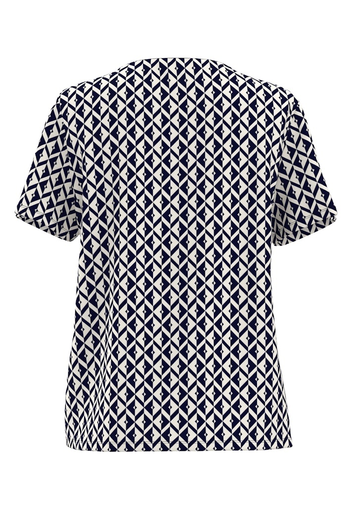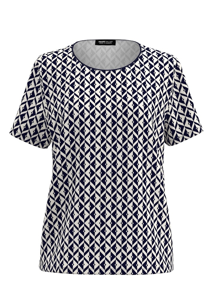 Frank Walder Shirt in de Kleur Marine/Offwhite Combinatie met ronde hals, korte mouwen en geheel in een print.