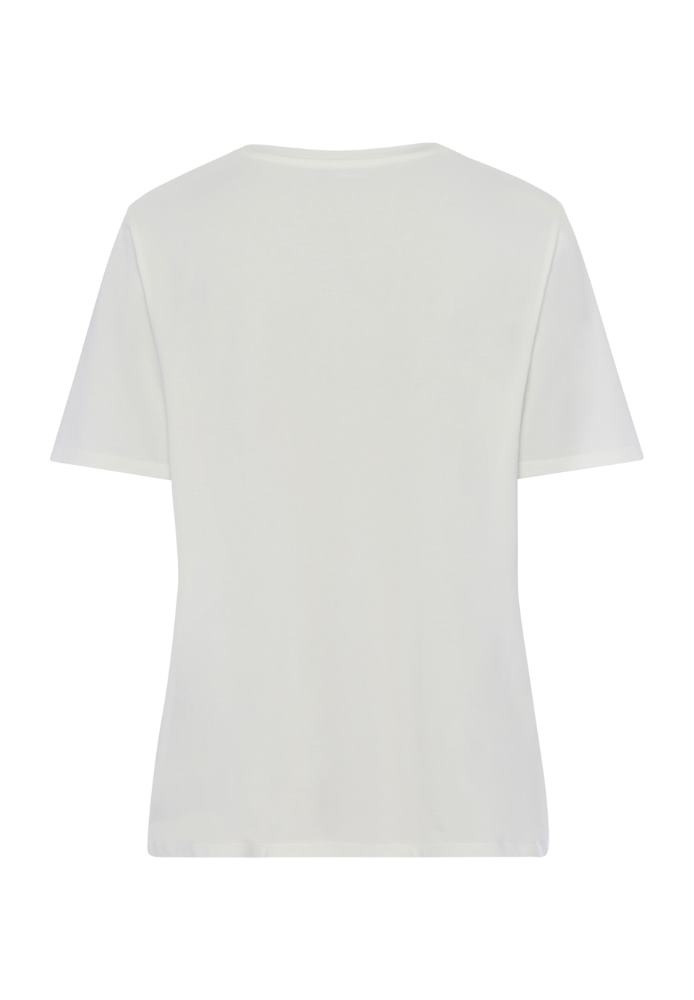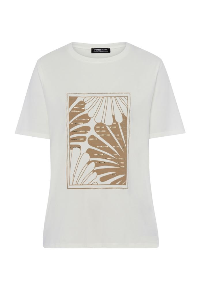 Frank Walder Shirt in de Kleur Offwhite/Hazelnoot Combinatie met ronde hals, korte mouwen en een kleine print op de voorkant.