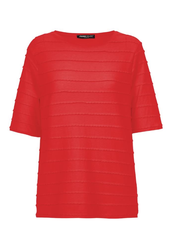 Frank Walder Shirt in de Kleur Rood met ronde hals, korte mouwen en in een voelbare streep.
