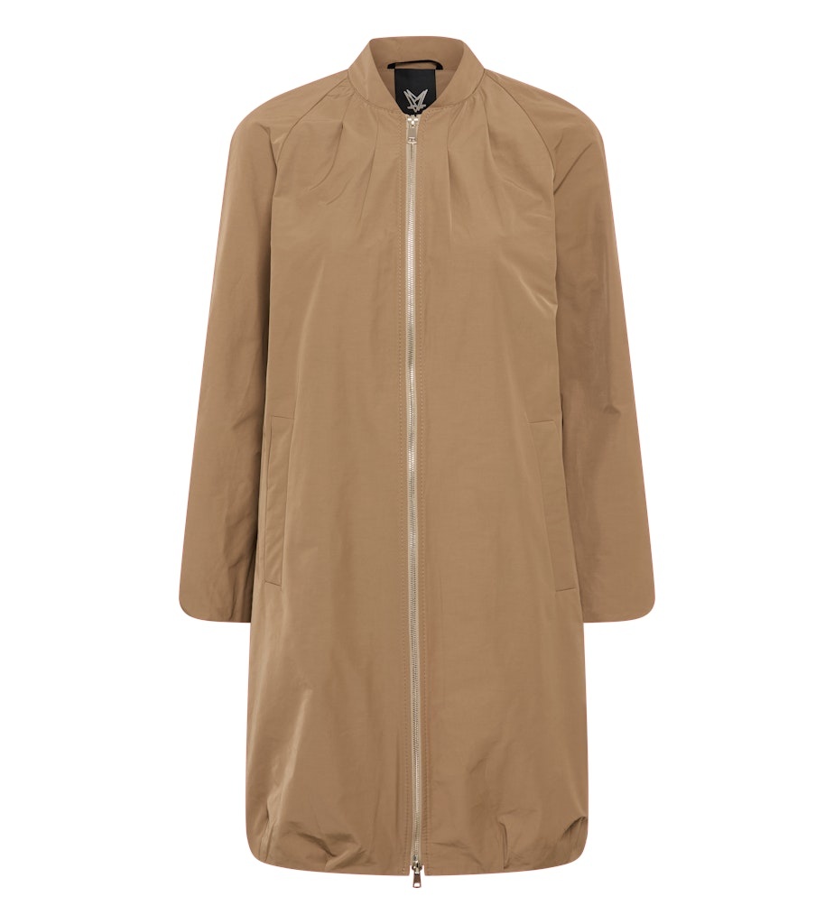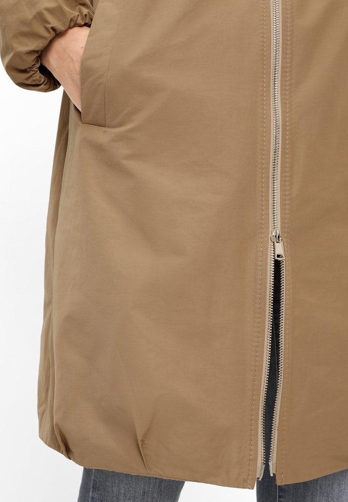 Fuchs Schmitt Langere Bomber/Jas in de Kleur Camel met staande kraag, ritssluiting, steekzakken en iets samengeknepen onderin de boord. Het is eigenlijk een lang bomberjack/jas. Dit model leent zich perfect om een eerste bui te trotseren van auto naar binnenlocatie of juist ideaal voor stadsbezoeken.