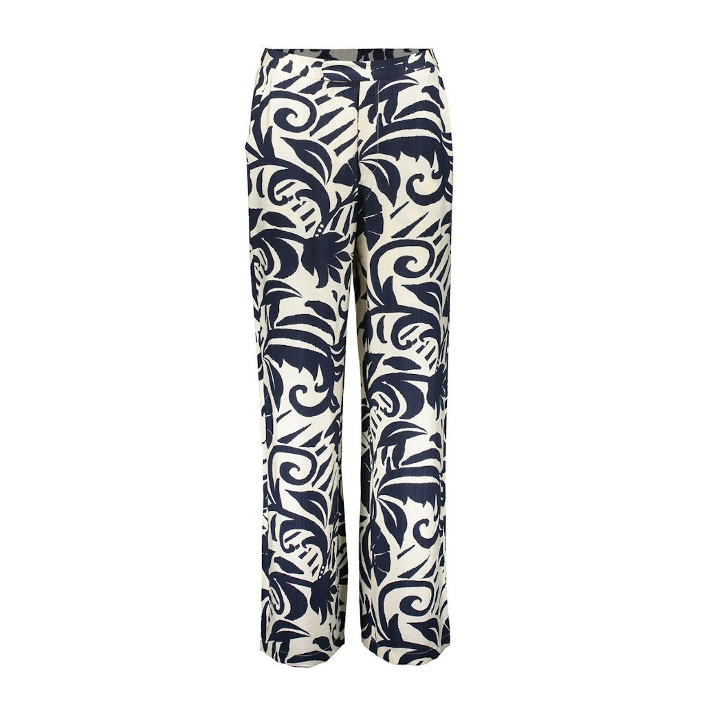 Geisha Broek in de Kleur Marine/Ecru Combinatie met sluiting en in een recht model.