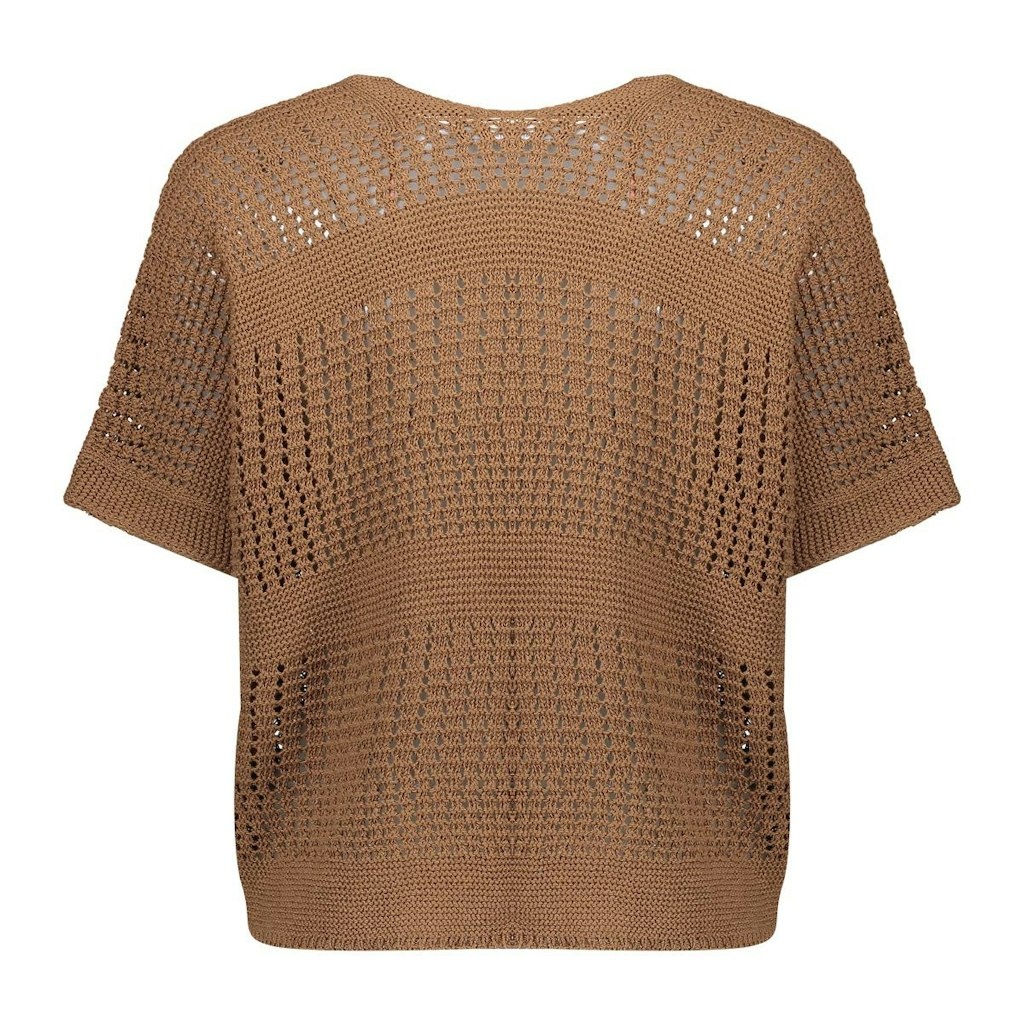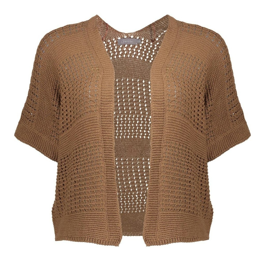 Geisha Vest in de Kleur Hazelnoot in een losvallend model, korte mouwen en iets opengewerkt.