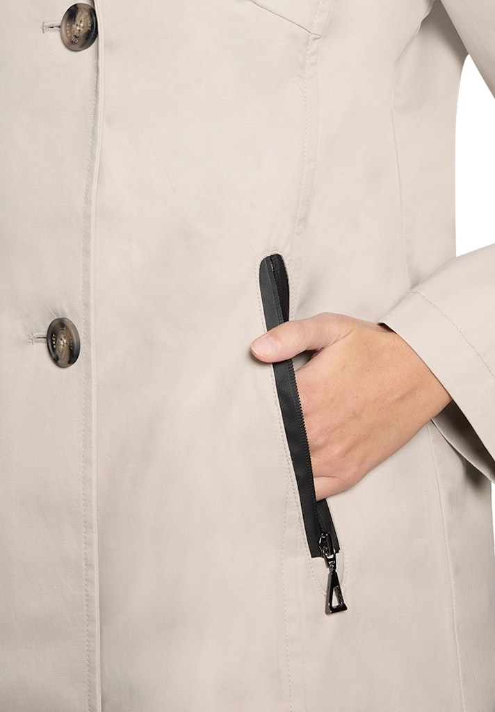 Gil Bret Weather Protected Parka in de Kleur Zand met kraag en rever met knoopsluiting, uitneembare gestepte kraag en ritssluiting en 2 ritszakken. Het gestepte deel kan eruit geritst worden. Hierdoor kan je deze parka al snel dragen. Deze Parka is ook water en wind afstotend maar wel ademt.