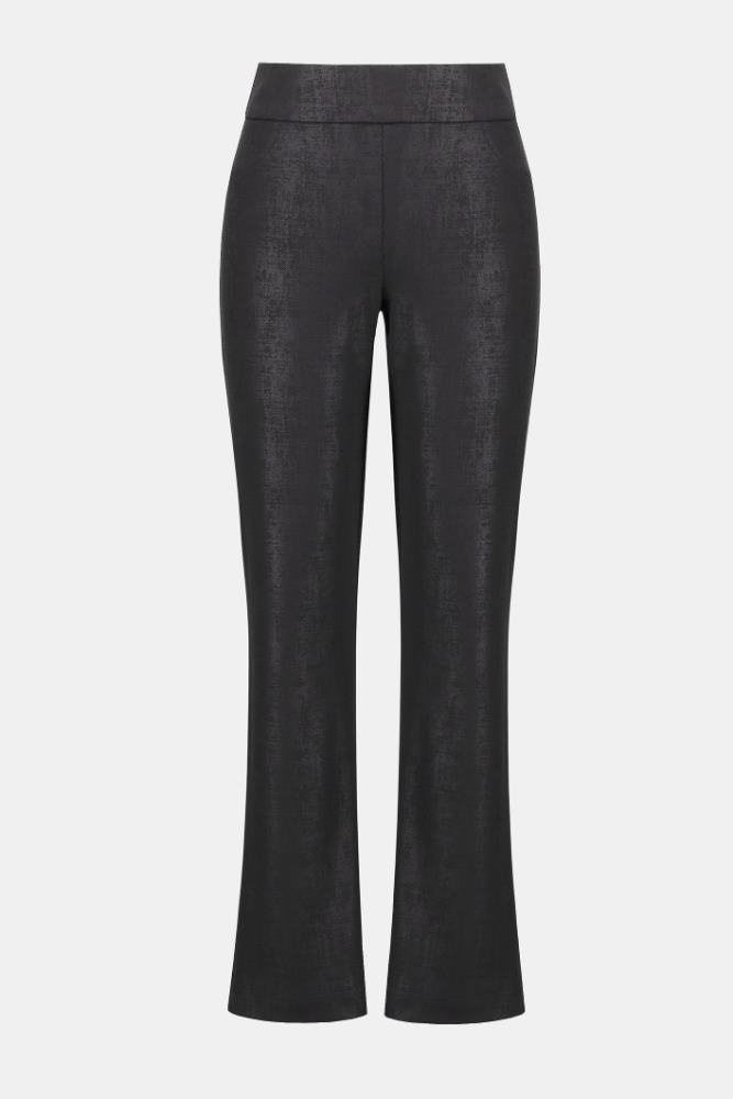 Joseph Ribkoff Broek in het Zwart met een elastische band en iets uitlopende been en met een look a feel van imitatiesuede. Prachtige zachte son sur ton print op deze soepele broek.