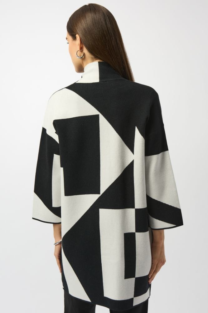 Joseph Ribkoff Vest in het Zwart/Ivoor en losvallend, lange mouwen, 2 opgestikte zakken en in een vlakpatroon. Mooie dubbele kwaliteit.