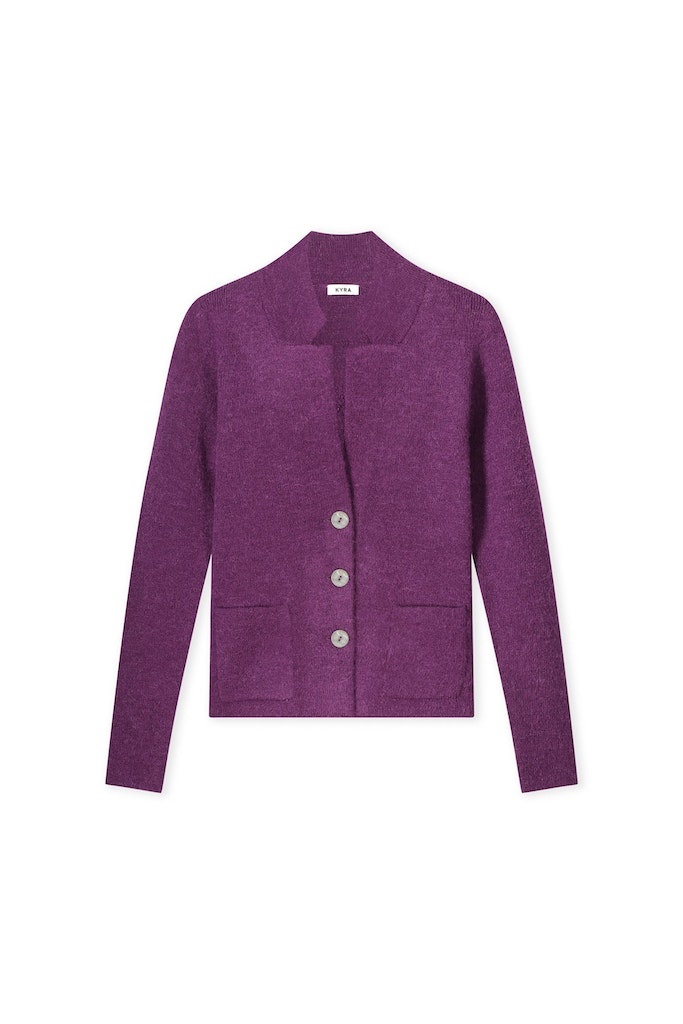 Kyra Vest in de kleur Purple met kraag en rever, 3 knoops en 2 paspelzakjes.