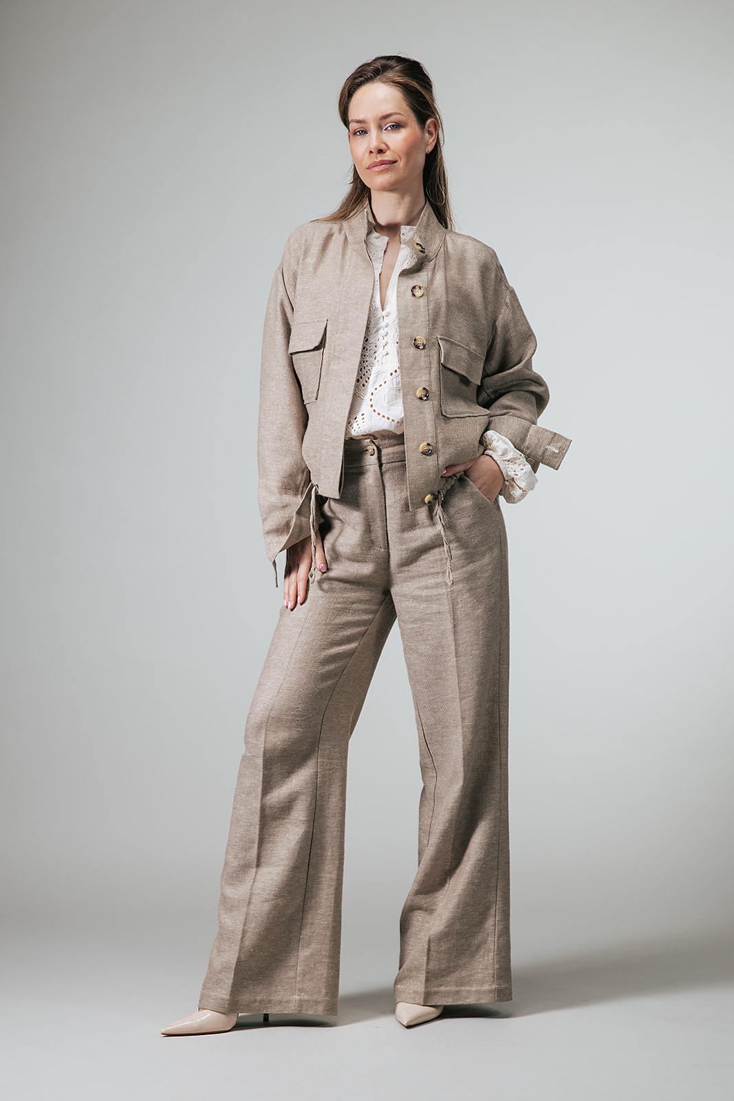 - 53% Linnen, 43% Katoen, 4% Lurex