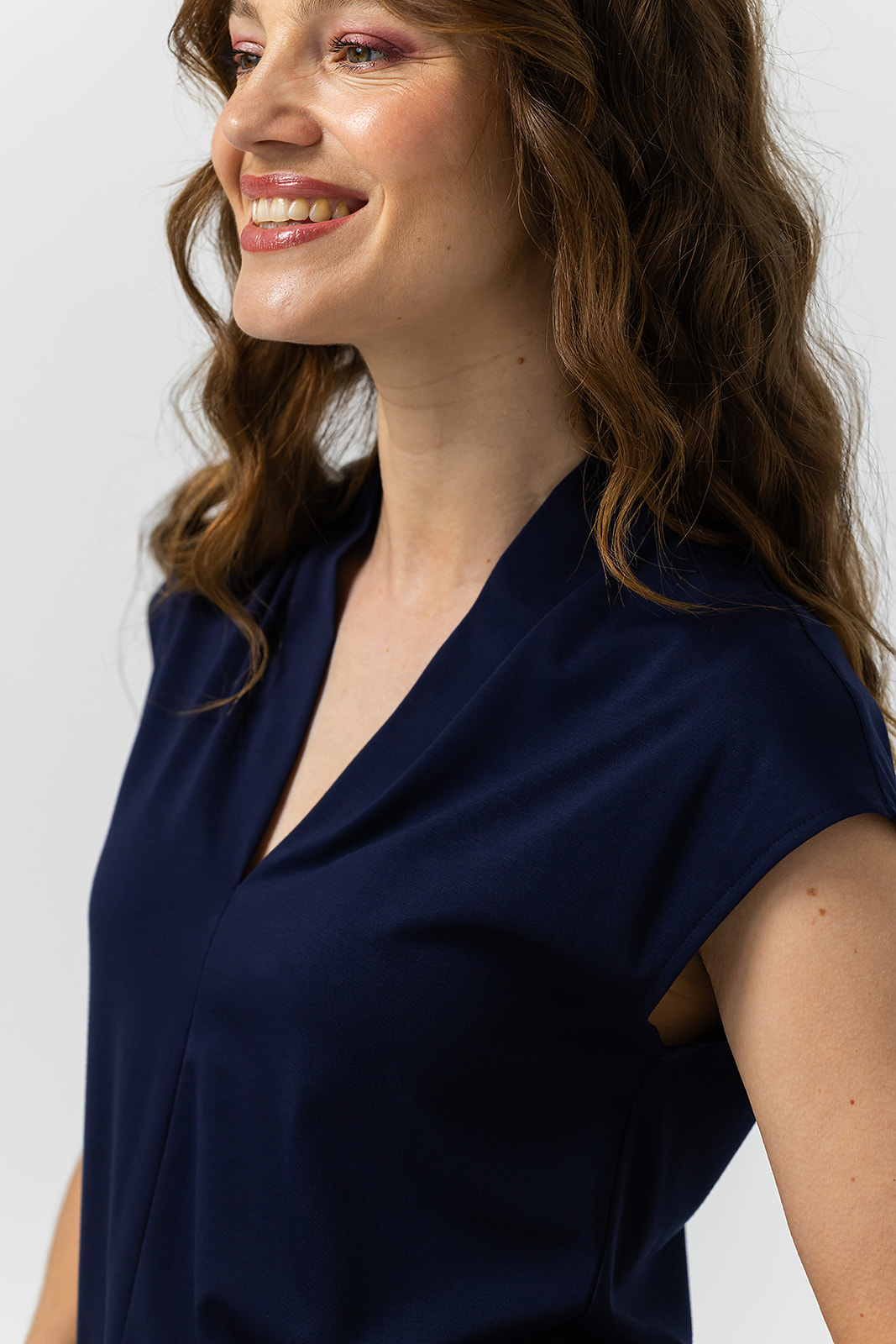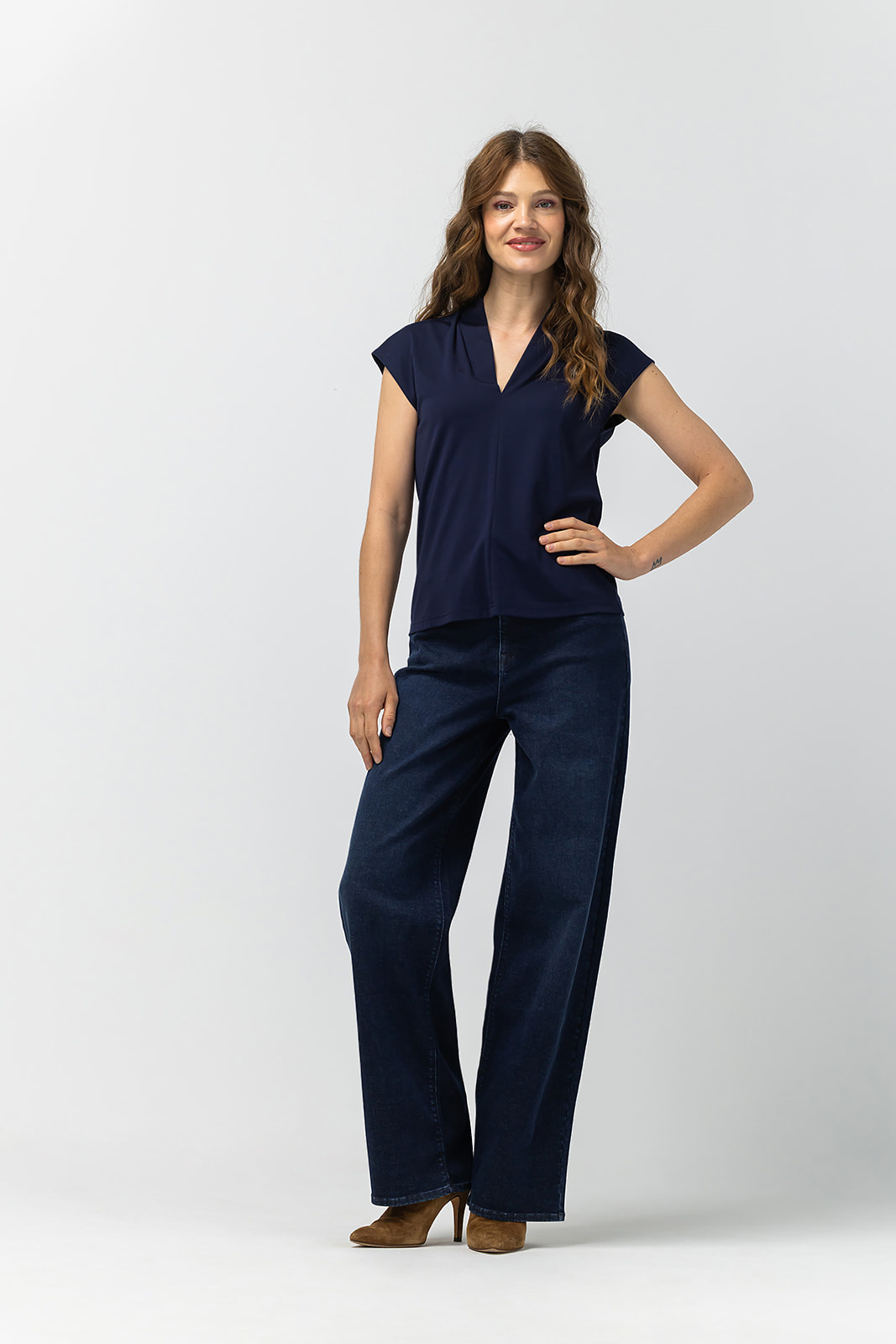 Label Dot Shirt in de Kleur Marine met V hals en een kapmouwtje.
