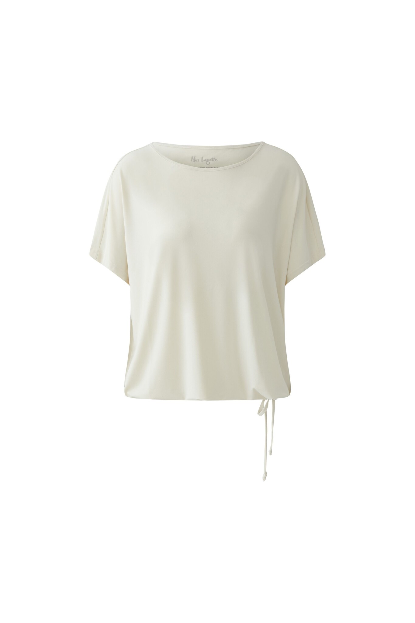 Miss Lagotte Shirt in de Kleur Beige met ronde hals, kapmouwen en ene koord in de boord om het iets aan te snoeren.